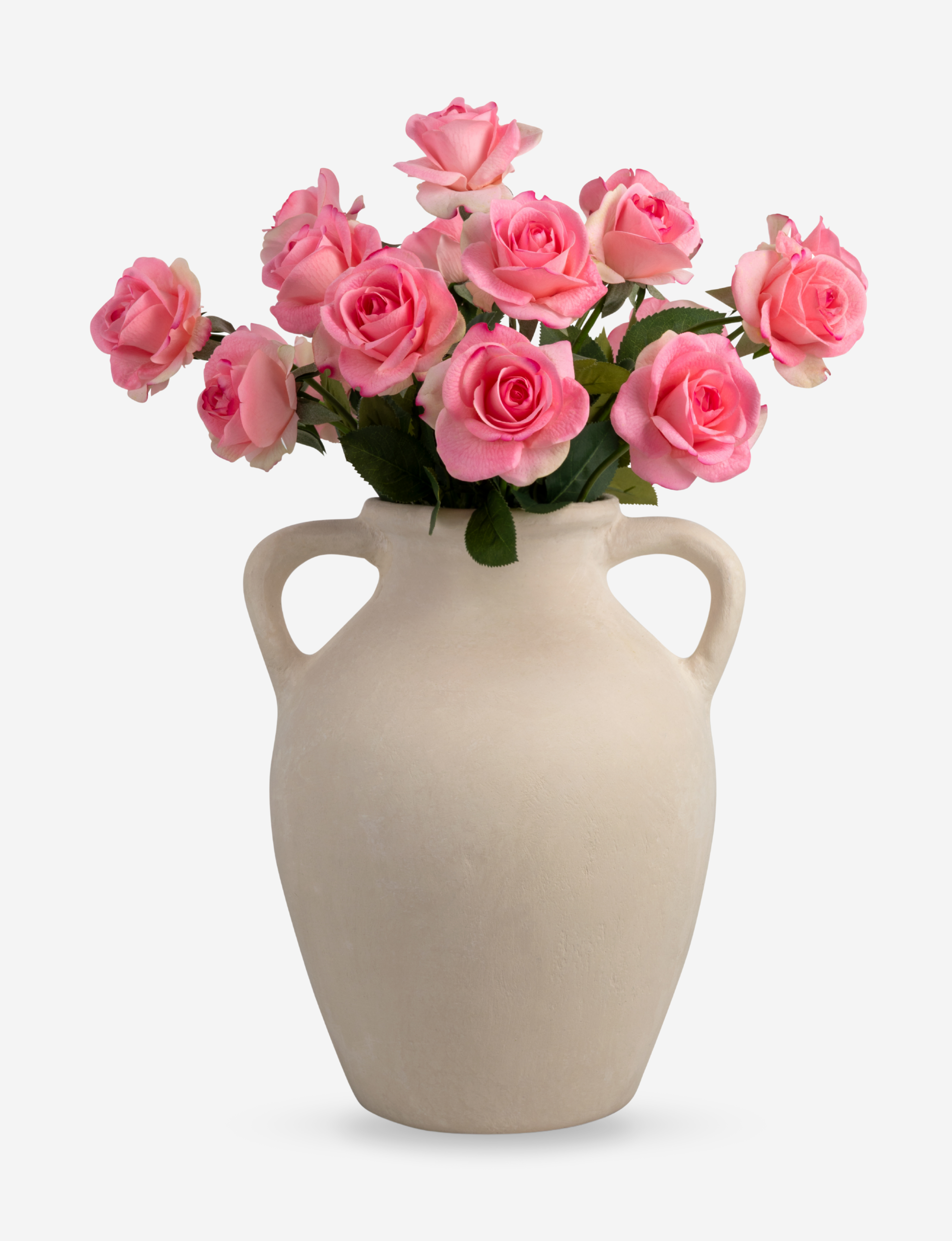 The Alira RealTouch Rose Arrangement is a romantic yet refined statement, featuring softly opened roses arranged with graceful movement and natural depth. Crafted from premium faux botanicals using CocoBella’s signature RealTouch materials, each bloom offers exceptional lifelike detail and a velvety softness that mirrors fresh roses. Set in a sculptural neutral vessel with classic handles, Alira brings effortless elegance to consoles, bedside tables, and styled moments throughout the home. Perfect for gifting or elevating everyday spaces, this arrangement delivers timeless beauty with lasting craftsmanship.