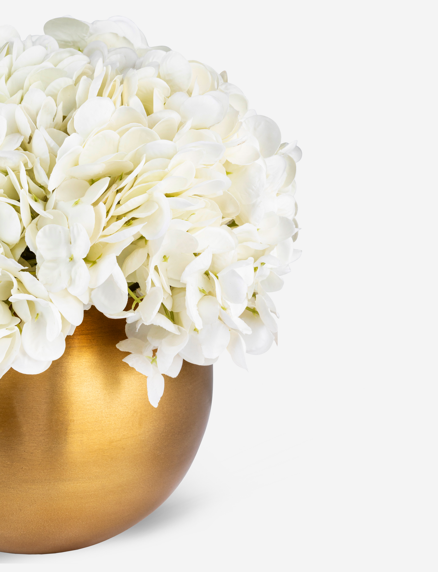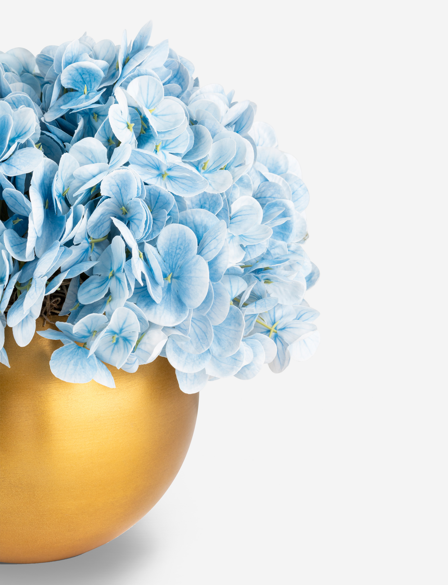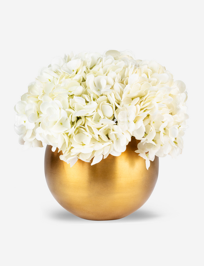 Elegantly arranged in a rounded gold fishbowl, the Auden RealTouch Hydrangea Arrangement features lifelike RealTouch hydrangeas that bring a soft, timeless beauty to any space. Its stunning design makes it the perfect accent piece for any room, while also serving as an exquisite gift that will leave a lasting impression.