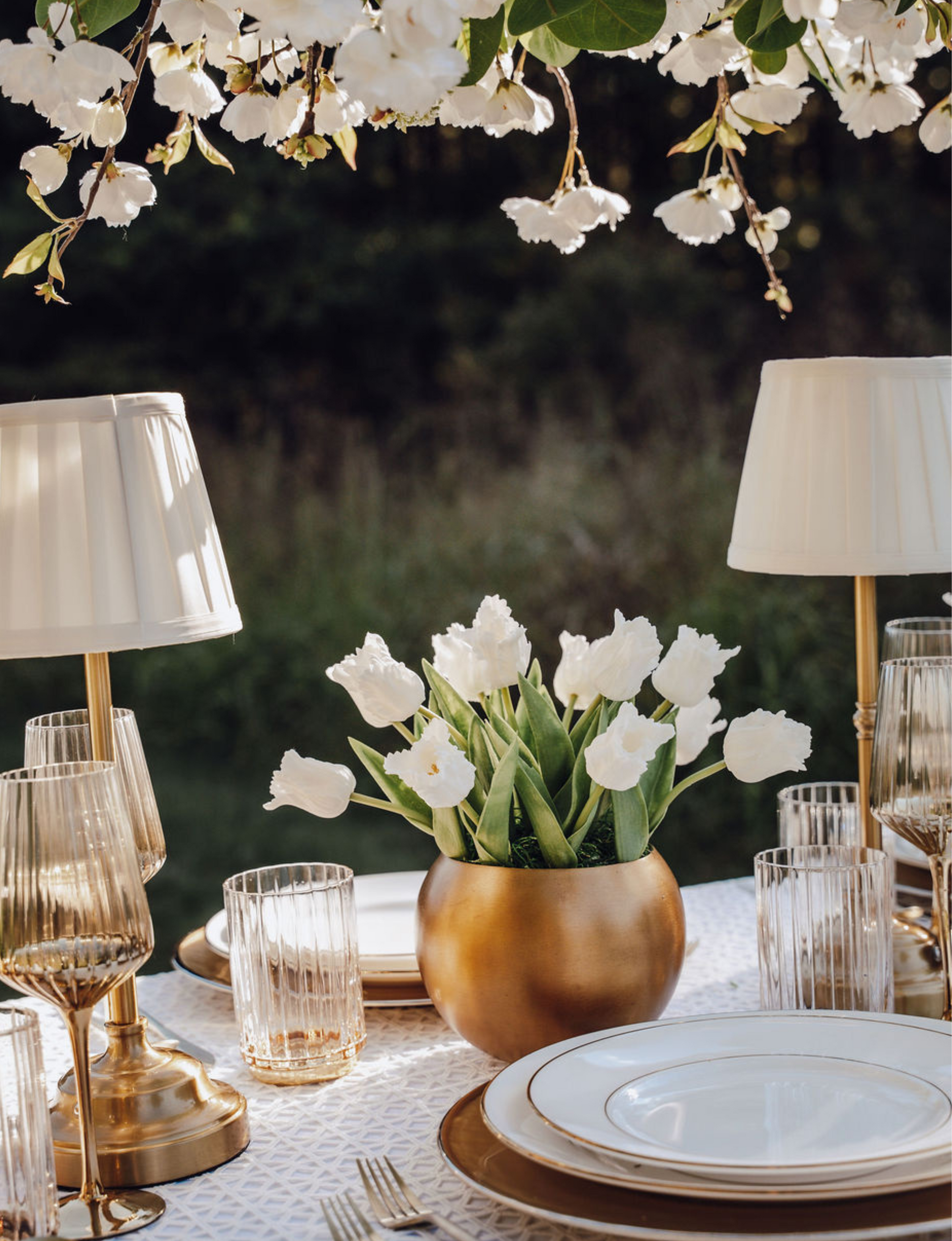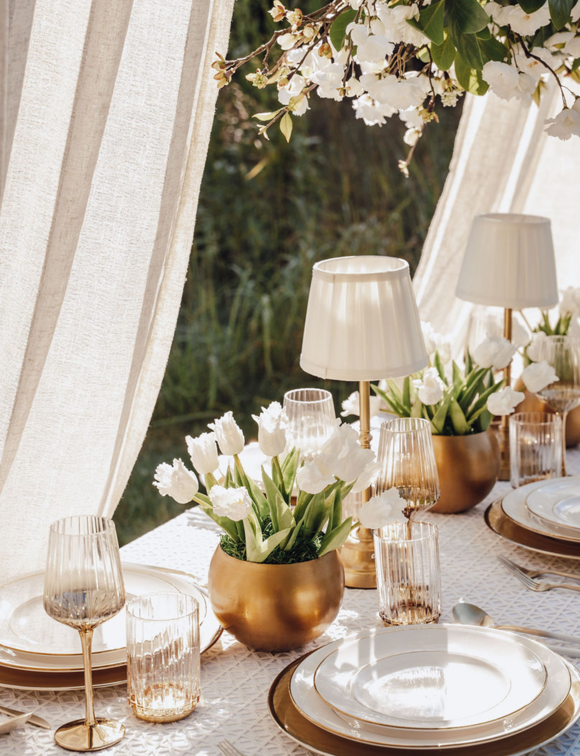 The Maelora RealTouch Tulip Arrangement showcases lifelike tulips in full bloom, gracefully arranged in a matte gold vase. Elegant and versatile, it brings refined beauty to any tabletop and effortless charm to every space in your home.