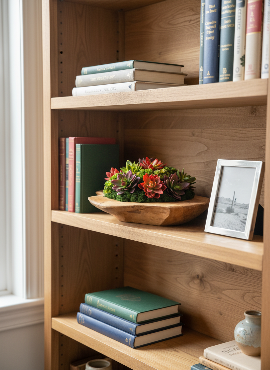 Natural and sculptural, the Mojave Wooden Bowl Succulent Arrangement features a stunning blend of lifelike succulents nestled within a large, intricately curved wooden bowl. The rich texture of the wood complements the vibrant greenery, creating a harmonious balance of organic beauty and refined design. This arrangement adds a rustic yet sophisticated touch to any space, perfect for those who appreciate both nature and craftsmanship.