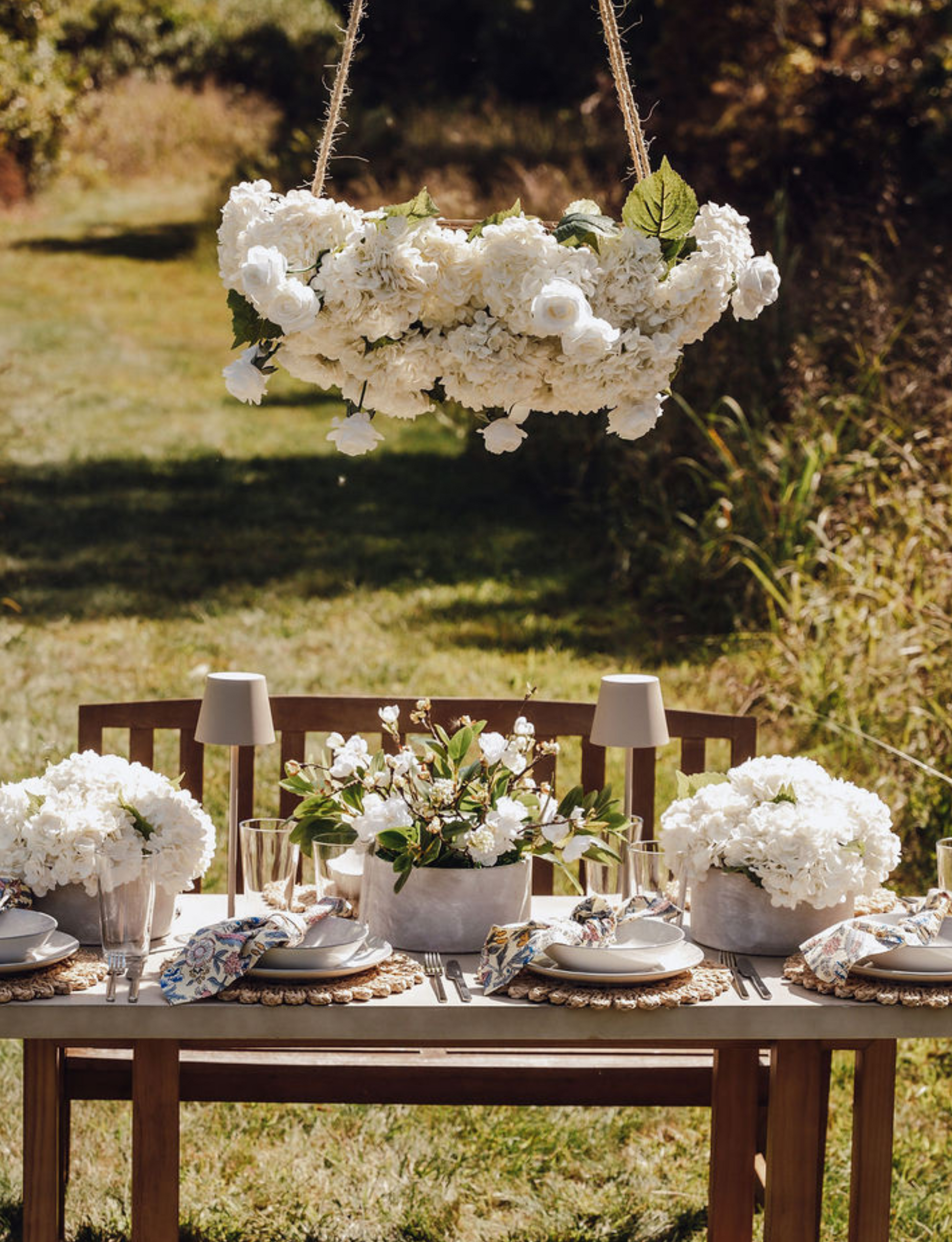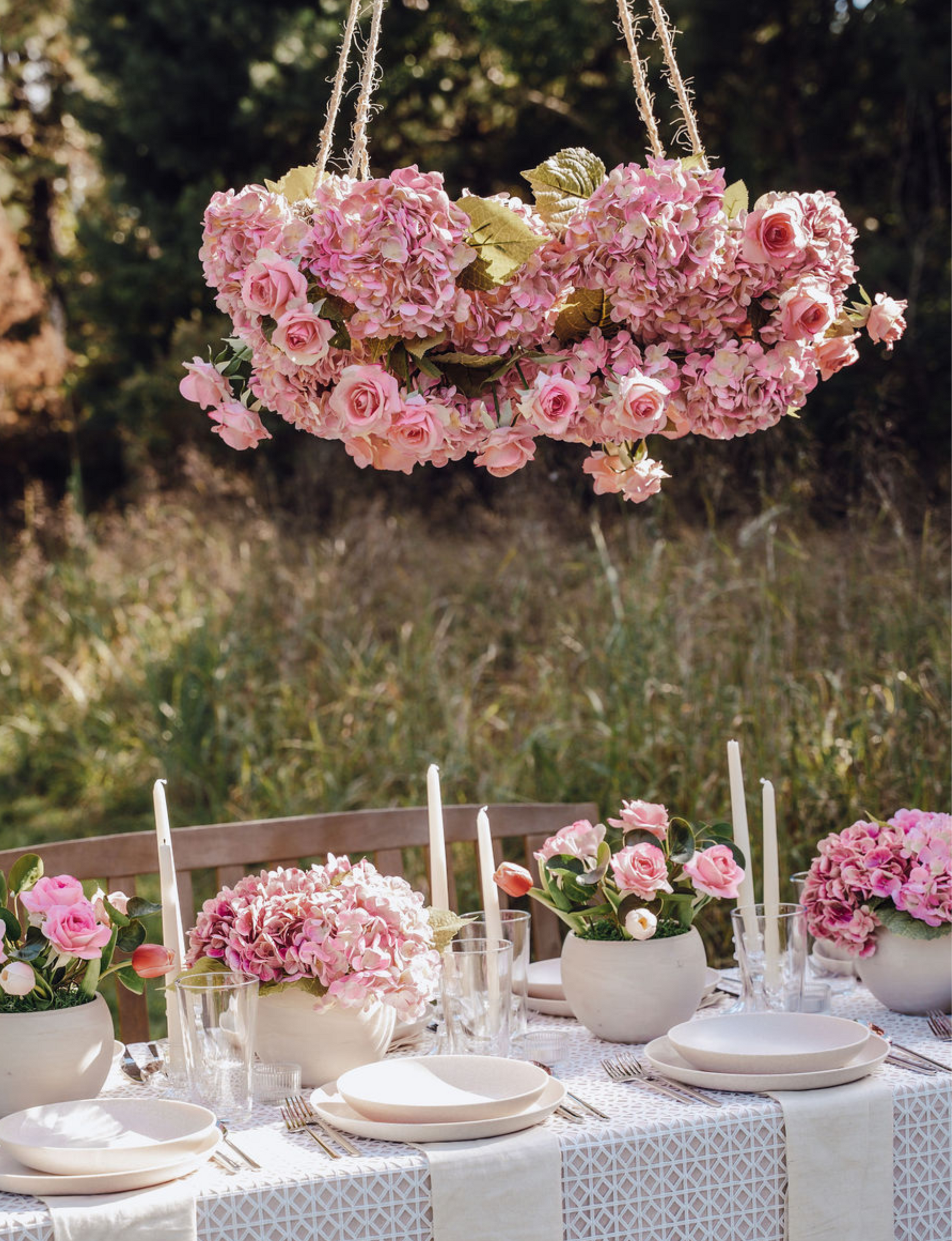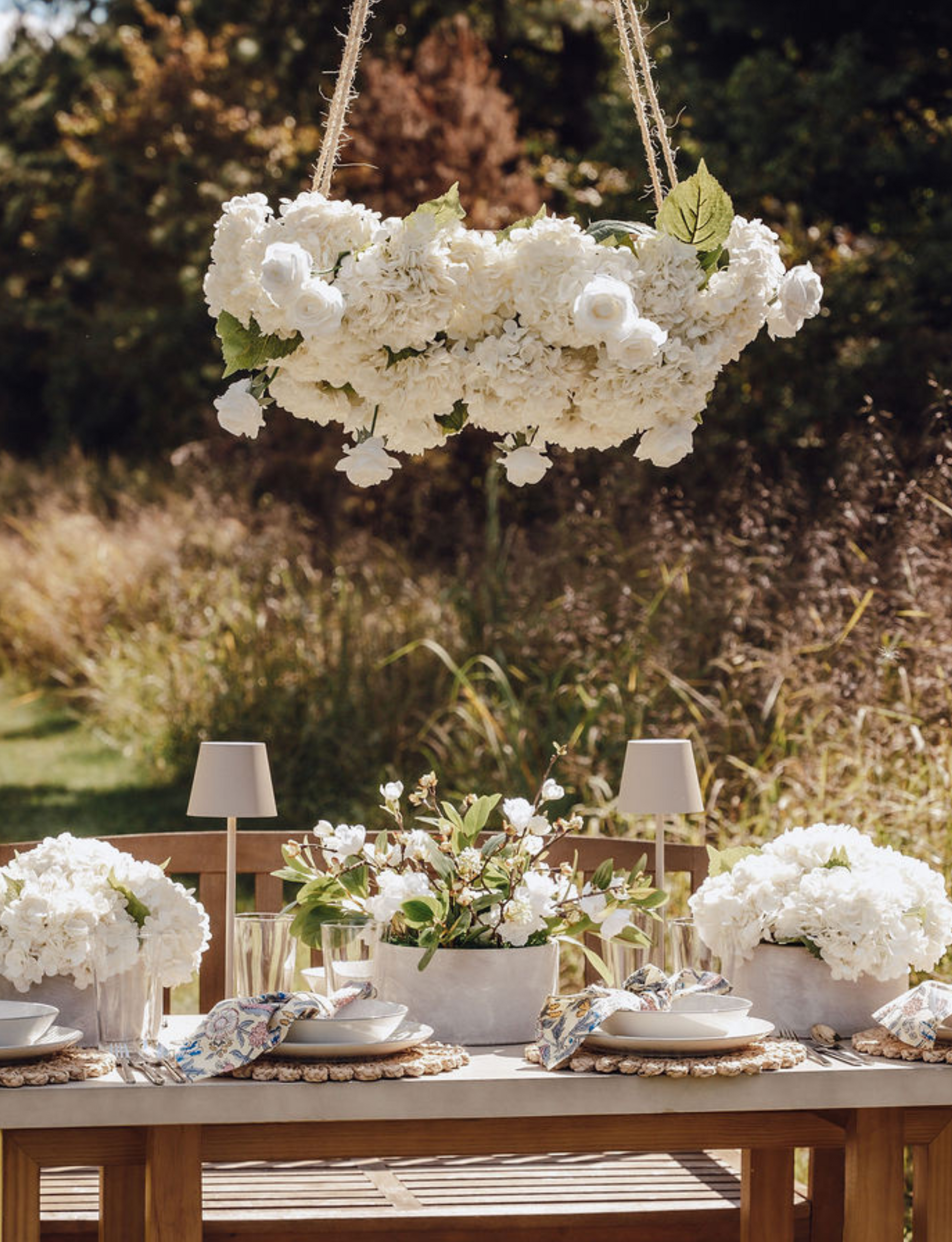 The Virelia RealTouch Garden Chandelier captures the elegance of lifelike Hydrangeas and Roses in full flourish. Available in Snow and Blush, it brings a sense of romance and sophistication to any space—perfect for hanging indoors or outdoors, or to elevate the ambiance of any event.